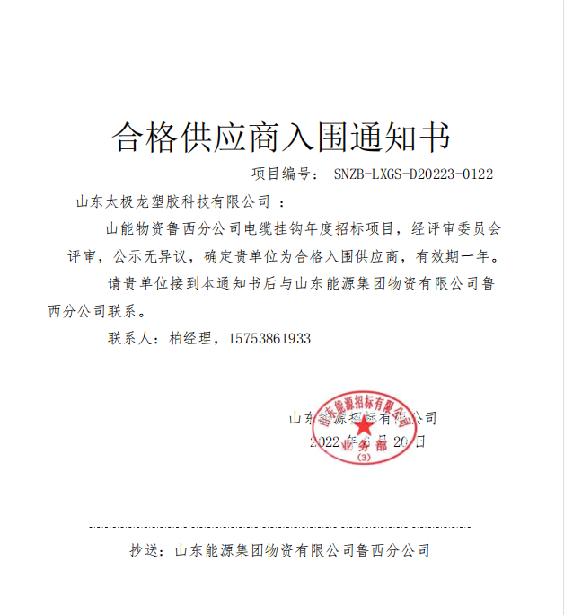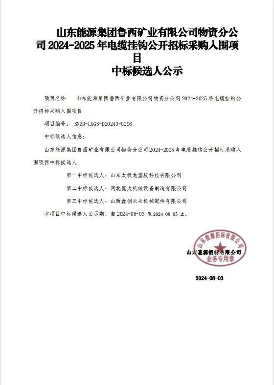 山東能源集團魯西礦業(yè)2024-2025年電纜掛鉤項目中標